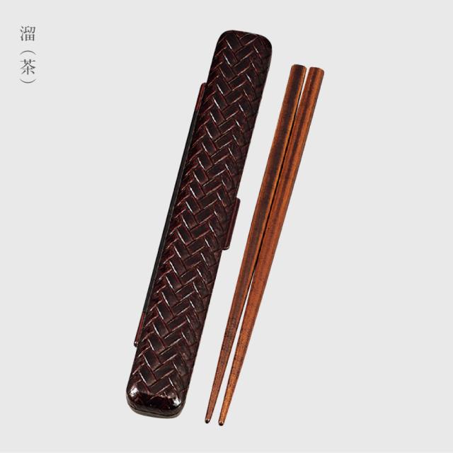 昔ながらの模様「あじろ」のシンプルで使い勝手の良い箸箱セット。職人の手仕事で仕上げられた塗り製品です。