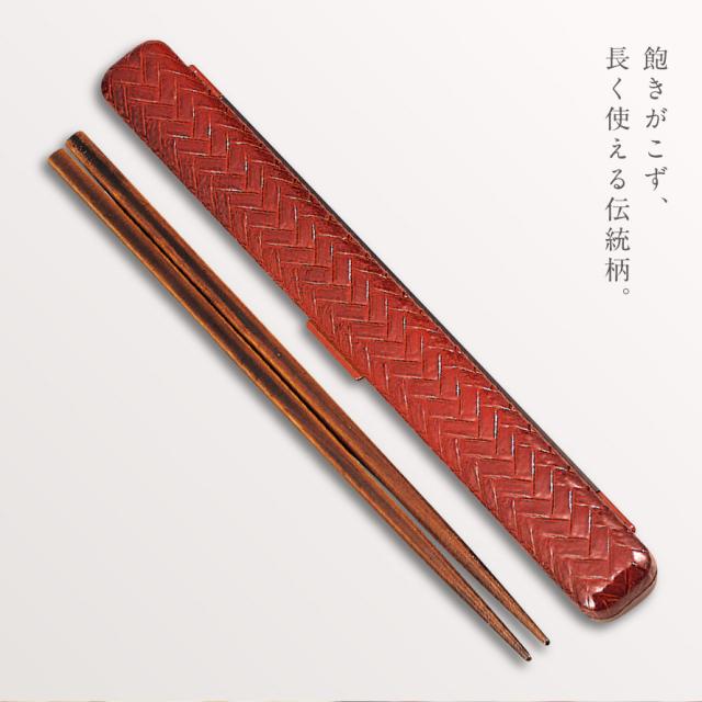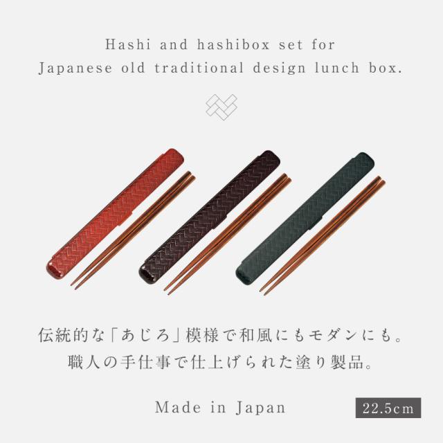 箸,22.5cm,箸箱,セット,箸箱セット,弁当用,お箸,箸ケース,カトラリー,ケース,女子,女性,レディース,男子,メンズ,男性,日本製,大人,学生,中学生,高校生,和風,和柄,和,和モダン,シンプル,レトロ,スタイリッシュ,HAKOYA,弁当,お弁当,お弁当アイテム,ランチグッズ,グッズ,通勤,会社,通学,学校,昼食,お弁当作り,あじろ,網代,模様,赤,朱,溜,茶,お洒落,オシャレ,BPAフリー,安心,安全,