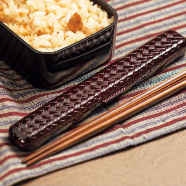 昔ながらの模様「あじろ」のシンプルで使い勝手の良い箸箱セット。職人の手仕事で仕上げられた塗り製品です。