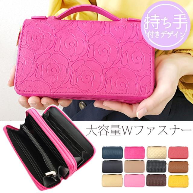 人気な大容量Wファスナー財布の持ち手付きタイプ!