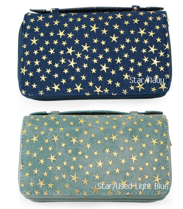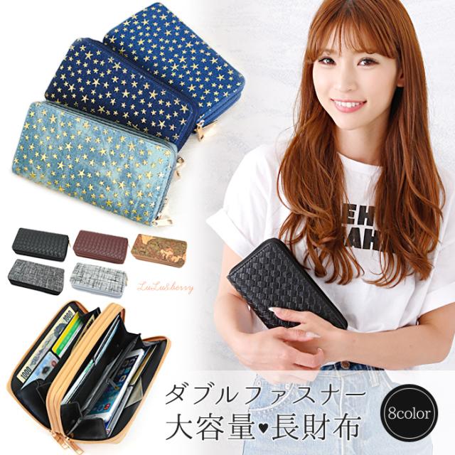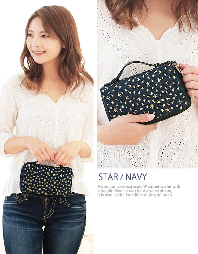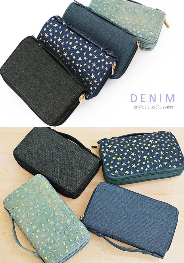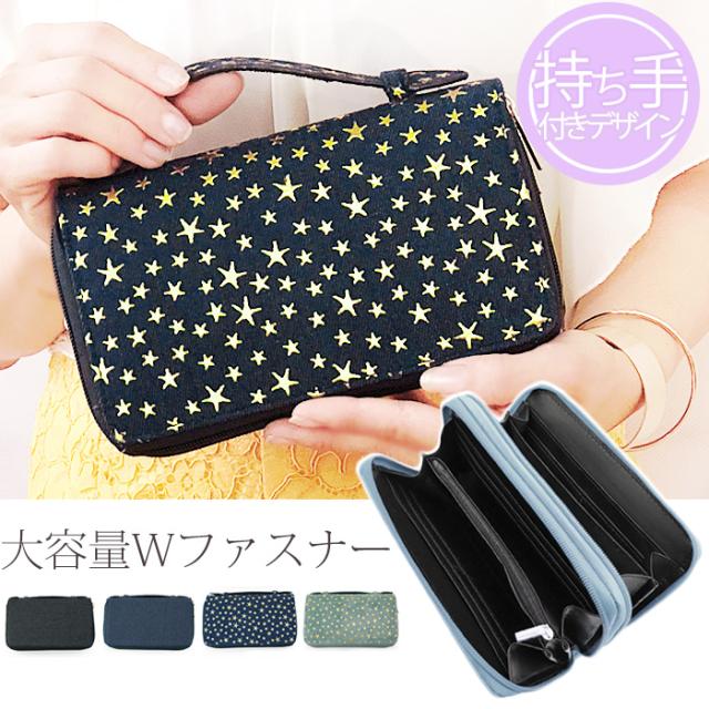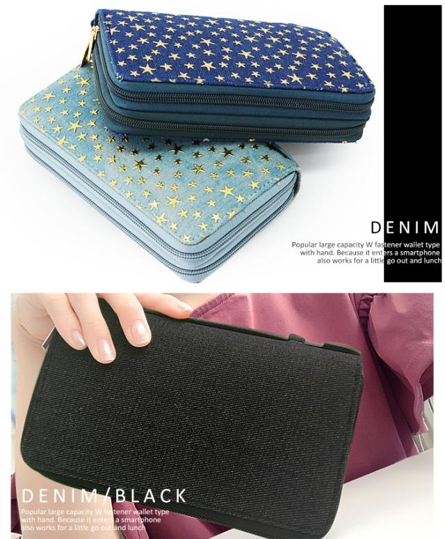 デニム ダブルファスナー 財布 長財布 レディース 大容量 通帳 スマホ 持ち手付き ウォレット (ar-MOPOm) [宅配B]【送料470】 女性 Wファスナー セカンドバッグ スマホが入る財布 財布 付き メンズ ラウンドファスナー長財布