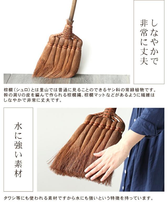 棕櫚箒は数百年の歴史があるといわれる日本の伝統的な箒で、和箒の中でも棕櫚箒は耐久年数が長く、丈夫で長持ちするといわれています。