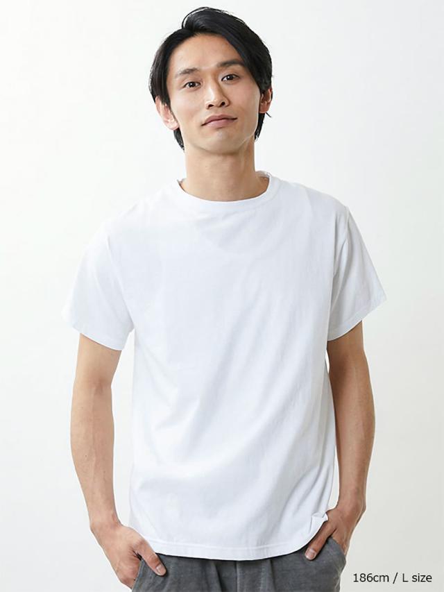 ■ GOOD ON グッドオン 商品詳細 GOOD ON グッドオンより半袖クルーネックTシャツが登場致しました。 良質なUSAコットンを使用した5.5オンス 100% Cotton Jerseyで製作される、Good Onブランドにおいて最もベーシックでシンプルなアイテム、半袖クルーネックTシャツ。 日本の気候に最適な生地感、日本人の体型に最適なサイズ感、安心して洗濯を繰り返すことのできるしっかりとした縫製で、毎日快適に愛用することができます。 素材には肌に優しく強度にも優れた高品質のUSAコットンを使用。 アームホールや裾、袖口、ネックリブの縫製は、肌への当たりが優しく、製品に大きな負荷のかかる独自の後染め加工にも耐えうる丈夫な2本針のフラットシーマ—を採用。 古き良きアメリカの粗野でカジュアルなTシャツを彷彿とさせる長めのステッチピッチで縫製しており、これにより製品染めによる風合いや経年変化によるアタリがよりくっきりと美しく現れてきます。 襟周りの伸びを抑制するため、首後ろを通って左右両肩にかけての内側ラインには、身頃と同じ生地でテープ補強(タコバインダー処理)を施しています。 素材となるコットンの状態(縮率)に合わせてパターン(型紙)を作成しており、染色後に最も縮んだ状態から着用によって生地が馴染んでいくことでベストなサイズスペックとなるように計算しています。 胴体部分を丸胴編みにより筒状に編み上げているため胴周りには縫い目が無く、見た目も着心地もすっきりと軽やかで、ほつれやヨレ、斜行が生じづらいのが特徴です。 Reactive Dye(反応染め)カラーは落ち着いた雰囲気のきれいな発色が特徴で、飽きずに着られるベーシックかつシンプルな仕上がりは着回しやすく上品な印象です。 生地の凹凸に擦れた色の濃淡が際立つPigment Dye(顔料染め)カラーは、他にはない味のある表情が特徴で、洗濯の度に表面から徐々に色褪せしさらに風合いを増していきます。長く愛用するほどに上質なビンテージ品のように印象が変わっていく、経年変化による色あせを楽しむことができます。 Made in Japan |
