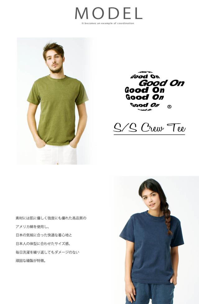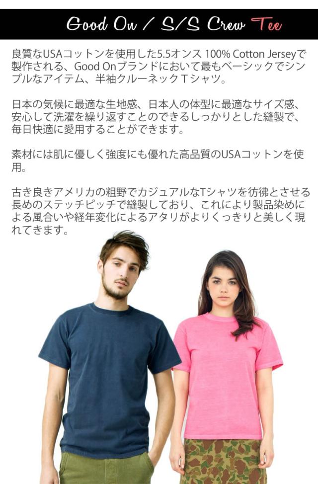 良質なUSAコットンを使用した5.5オンス 100% Cotton Jerseyで製作される、Good Onブランドにおいて最もベーシックでシンプルなアイテム、半袖クルーネックTシャツ。