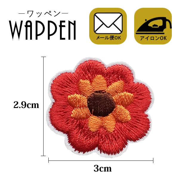 フラワー ワッペン 刺繍 アイロン接着 花 レッド 縦2.9cm×横3cm アップリケ アイロンワッペン 手芸 かわいい 母の日 プレゼント ギフト