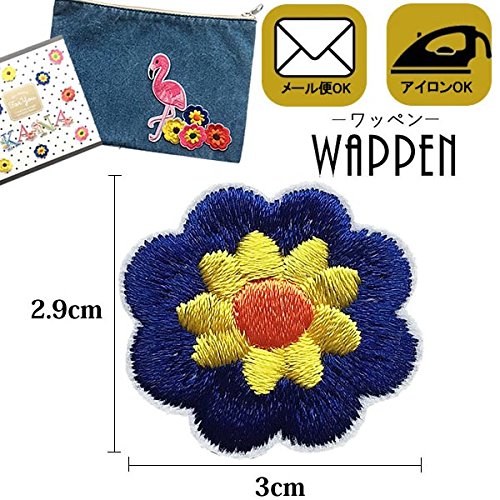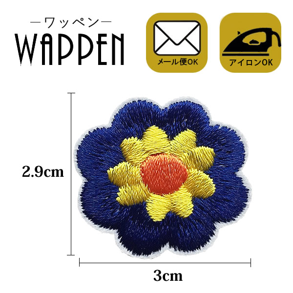 フラワー ワッペン 刺繍 アイロン接着 花 ブルー 縦2.9cm×横3cm アップリケ アイロンワッペン 手芸 かわいい 母の日 プレゼント ギフト