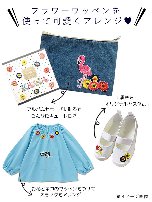 ワッペンをバッグやポーチ、などに貼り付けて、自分だけのオリジナルデザインを作り出すことができます!