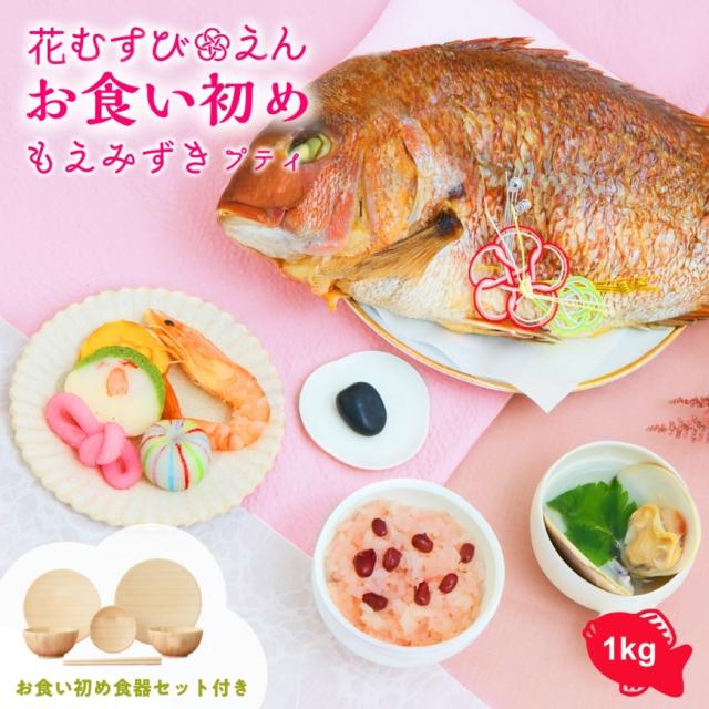 お食い初め セット 料理 【花むすび・えん お食い初め膳 -もえみずきプティ-《食器セット・鯛1.5kg》】 国産最高級ブランド真鯛 料理 歯固め石 赤ちゃん お祝い