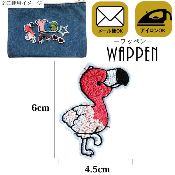 ふらみんご ワッペン 刺繍ワッペン アイロン接着 縦6cm×横4.5cm 動物 フラミンゴ アップリケ アイロンワッペン 手芸母の日 プレゼント ギフト