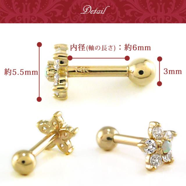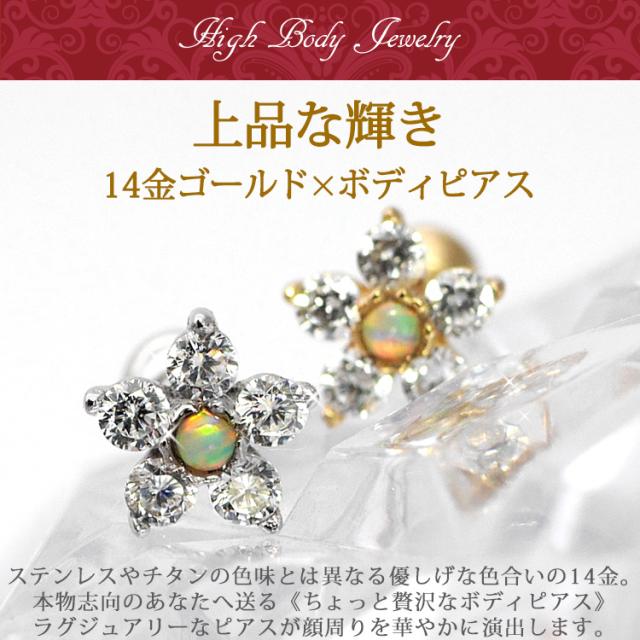ボディピアス 【ケース付】 14Kゴールド フラワーバーベル 16G ストレートバーベル 14金 へリックス