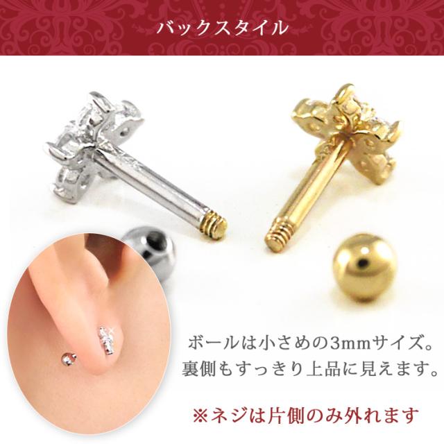 ステンレスやチタン色味とは異なる優しげな色合いの14金。本物志向のあなたへ送る《ちょっと贅沢なボディピアス》ラグジュアリーなピアスが顔周りを華やかに演出します。高価なピアスだからこそ、何度もお使いいただきたい。だからこそ使い勝手の良いデザインをご用意しています。本体カラーはホワイトゴールドとイエローゴールドの2色展開。 太さはボディピアスの王道サイズの16G。 耳たぶピアスとしてはもちろん、耳の軟骨部分にもオススメです。 本物のゴールドの輝きを是非一度ご体感ください。