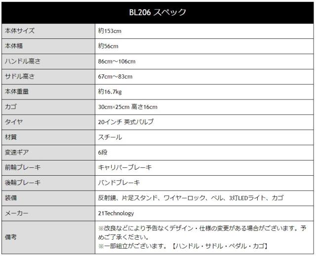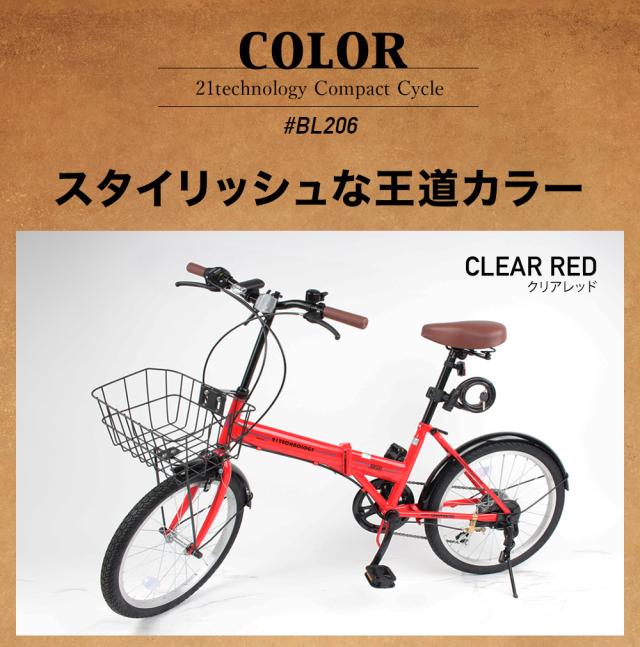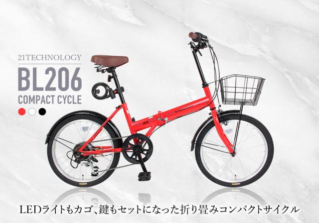 【メーカー直売】小径車 20インチ 折りたたみ自転車 ミニベロ シマノ6段変速搭載 自転車 カギ カゴ LEDライト 送料無料 BL206 21Technology