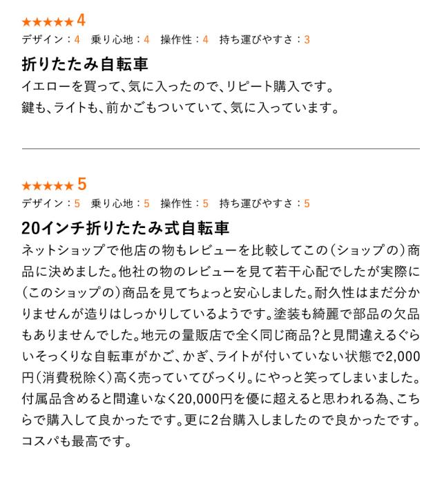 - 折り畳み自転車を初めて買いました。 店頭にはなかなか気に入るのが無く、この価格でギア、ライト、鍵がついているのでお得かなと思いこちらを購入しました。 組み立てが不安でしたがペダルとサドル、カゴだけだっ...