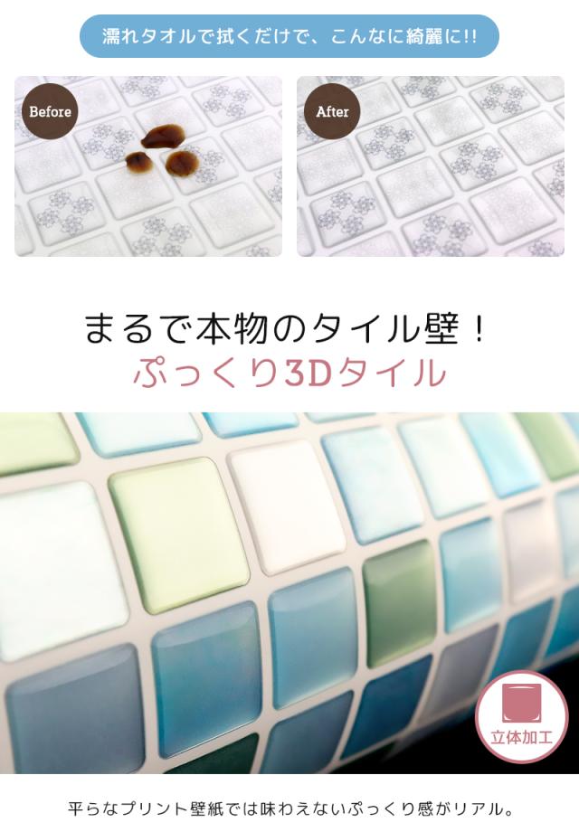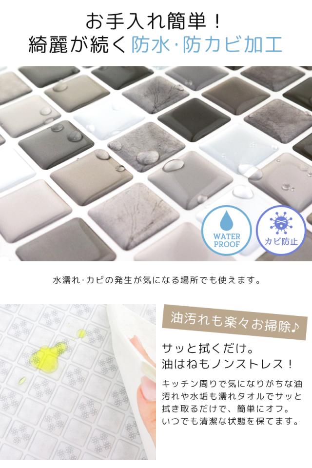 お手入れ簡単 糊なしで簡単に貼れる 耐水タイルシート!