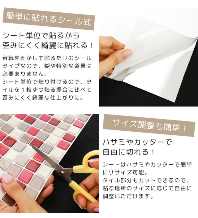 【10枚セット】 モザイクタイル キッチン タイル キッチンシール キッチンシート DIY キッチン 洗面所 【meru】タイルステッカー 防火 耐熱 油汚れ防止 キッチン 台所 ウォールステッカー ウォール シール はがせる 壁紙 壁シール DIY モザイクタイル シート おしゃれ