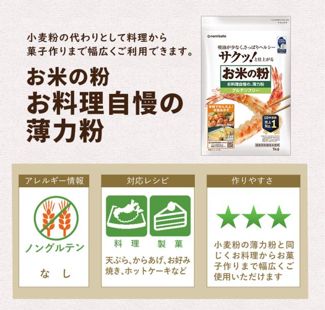 ・本品は、お米からできた米粉で小麦粉の代用として注目を浴びています。
