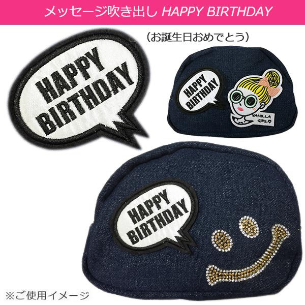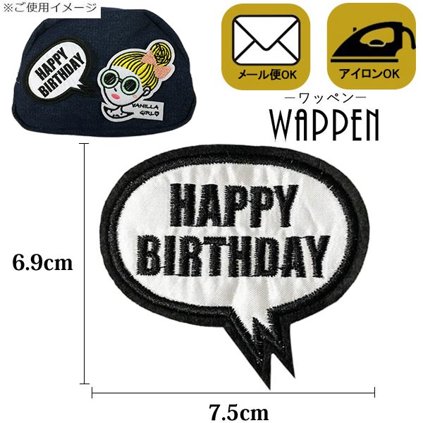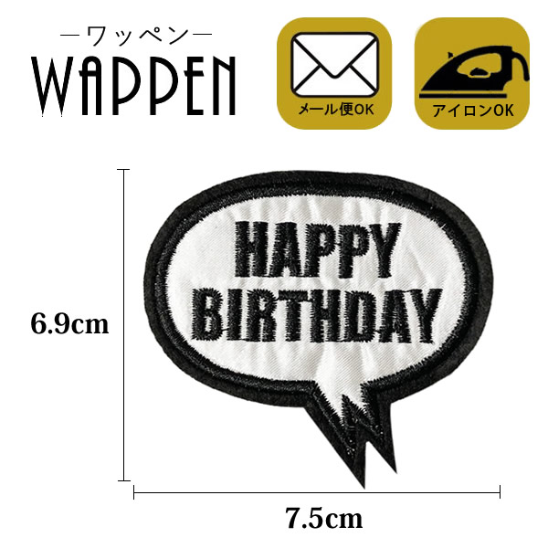 HAPPY BIRTHDAY 吹き出し ワッペン 刺繍ワッペン アイロン接着 縦6.9cm×横7.5cm フキダシ アップリケ 手芸母の日 プレゼント ギフト