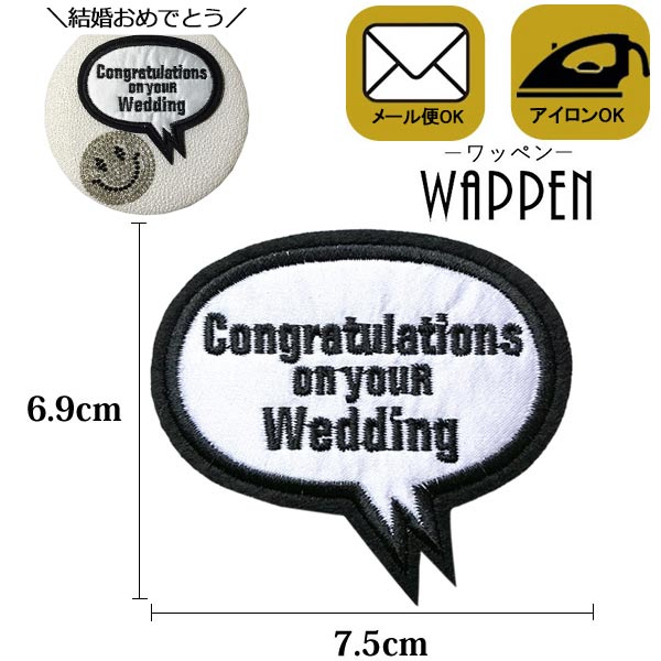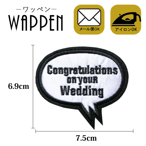 Congratulations on your Wedding(結婚おめでとう)吹き出し ワッペン 刺繍 アイロン接着 アップリケ 手芸母の日 プレゼント ギフト