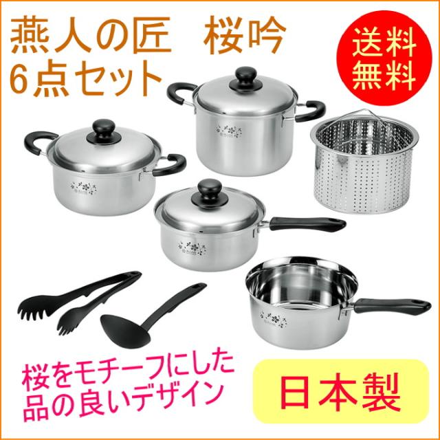 燕人の匠 桜吟 キッチンツール6点セット (ETS-2000) 送料無料 200V・IH対応 日本製 燕三条産 片手鍋 両手鍋