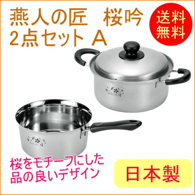 燕人の匠 桜吟 そそぎやすい鍋18cm&両手鍋20cm(ETS-800) 送料無料 200V・IH対応 日本製 燕三条産 両手鍋