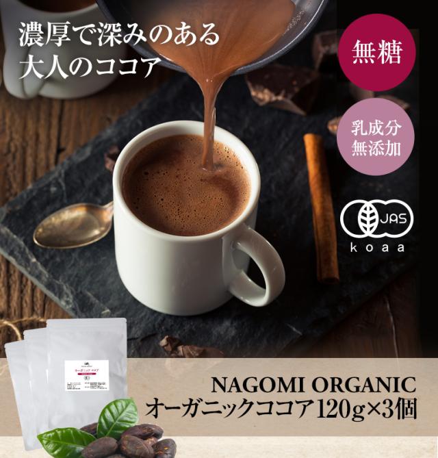 ココア オーガニック 120g×3パックセット 純ココア 粉末 パウダー 有機JAS 低脂肪 カカオ 無糖 お菓子作り バレンタイン 送料無料