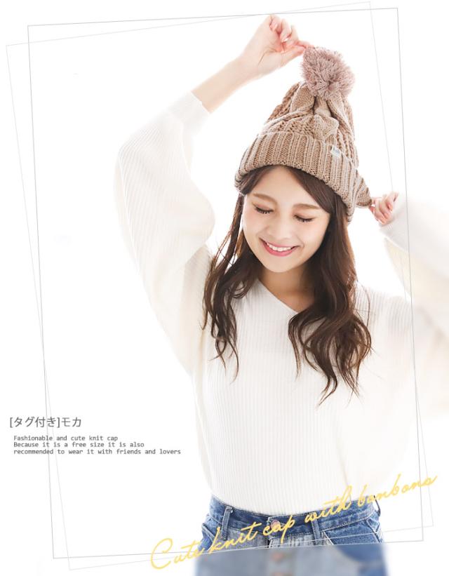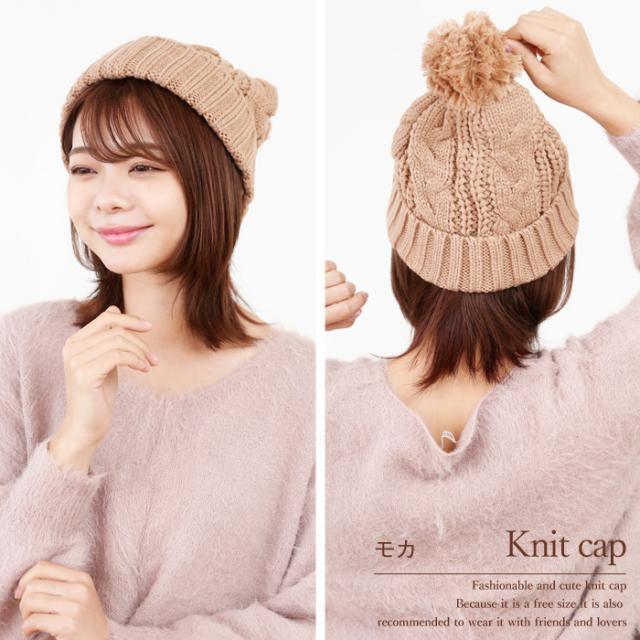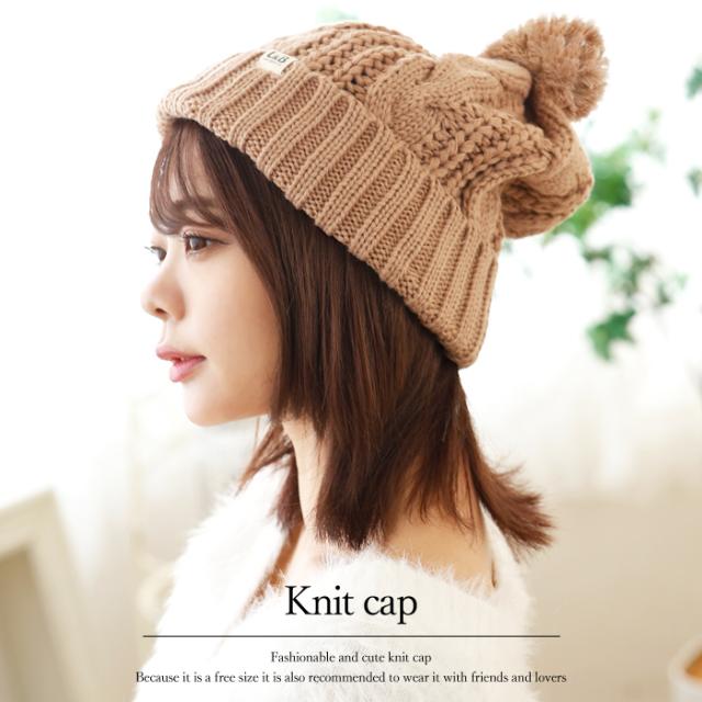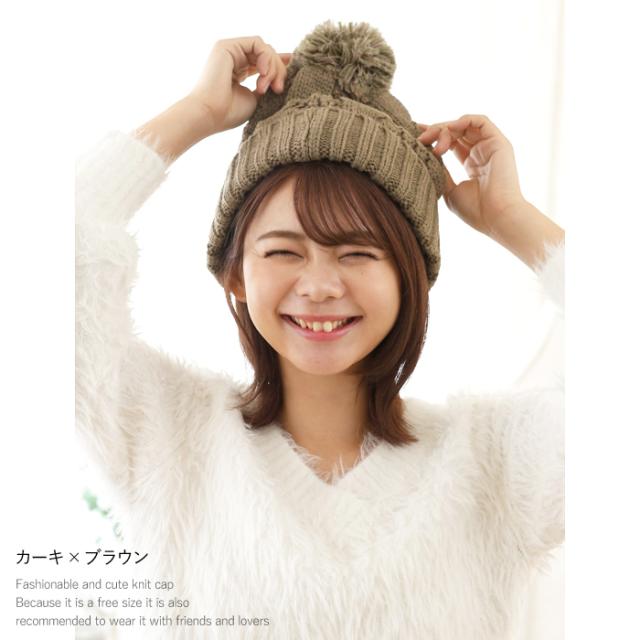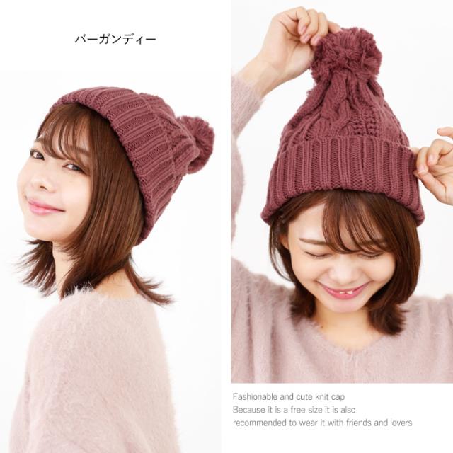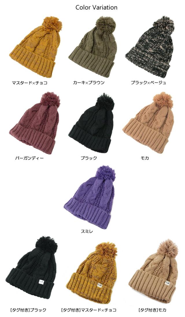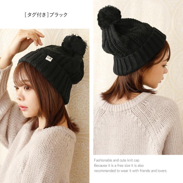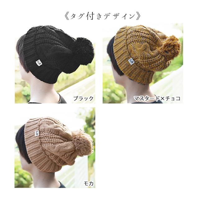 【2個買って1個無料】 帽子 ニット帽 レディース 秋冬 ゆったり ポンポン メンズ Lulu&berry ニットキャップ ボンボン ケーブル編み くさり編み ポンポン 付き オシャレ タグ ニット 防寒 スキー スノボ 登山 (ar-PPKm)【メール便送料無料】