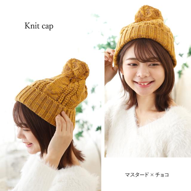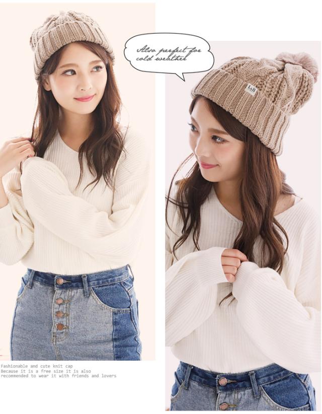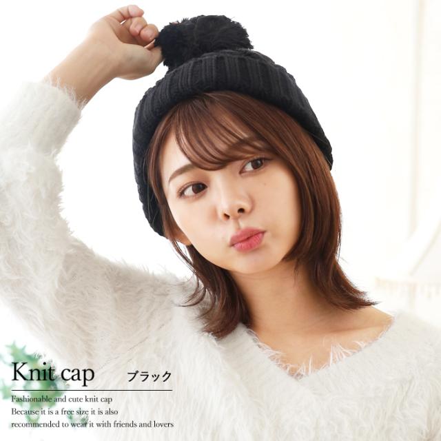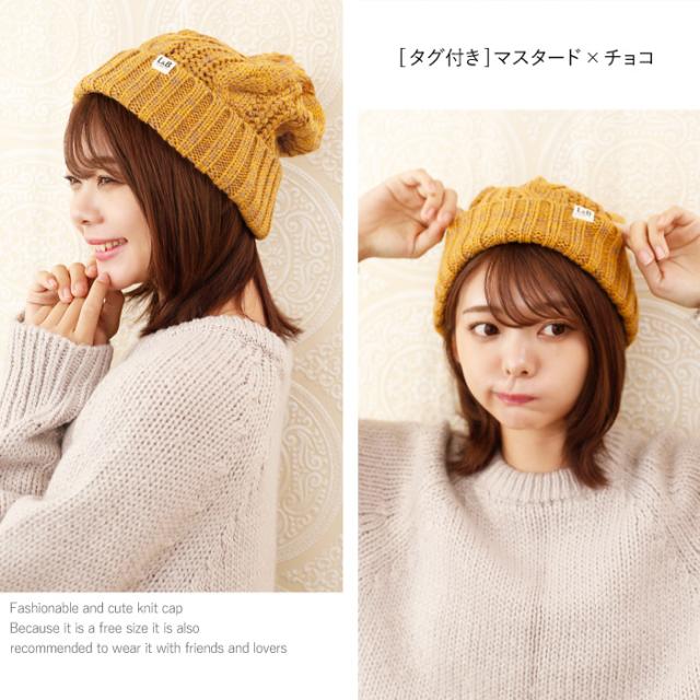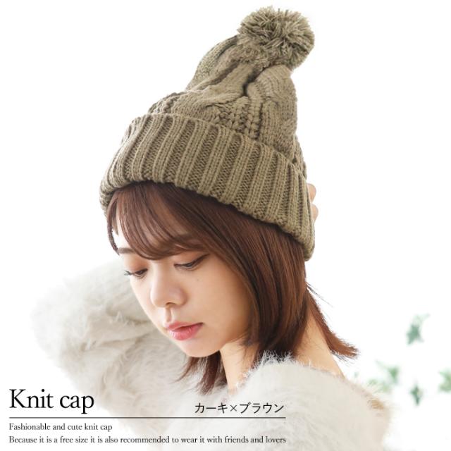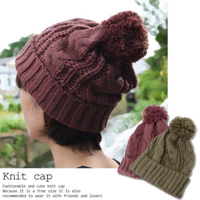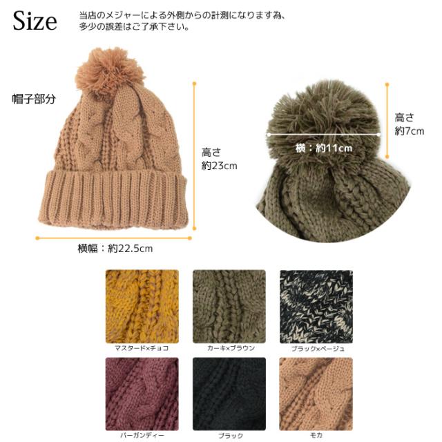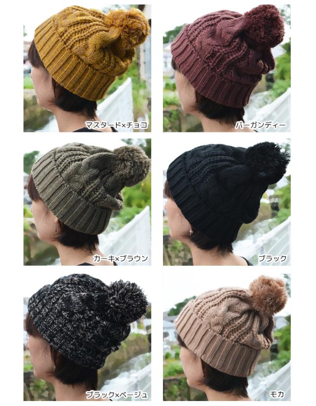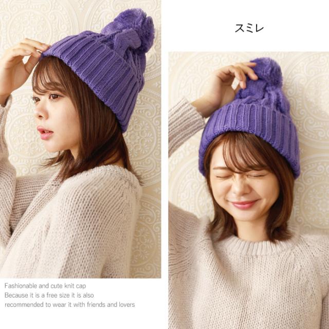 【2個買って1個無料】 帽子 ニット帽 レディース 秋冬 ゆったり ポンポン メンズ Lulu&berry ニットキャップ ボンボン ケーブル編み くさり編み ポンポン 付き オシャレ タグ ニット 防寒 スキー スノボ 登山 (ar-PPKm)【メール便送料無料】