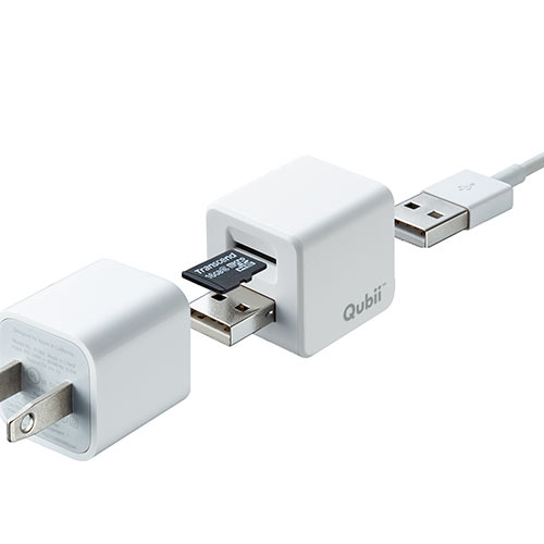 ⇒ご購入の前にご確認下さいiPhoneを充電する度に自動バックアップ。Apple純正のUSB-ACアダプタ(電源アダプタ)と組み合わせて、iPhone(アイフォン)・iPad(アイパッド)の写真・動画・連絡先をmicroSDカード(マイクロSDカード)に保存できる。クラウドファンディングから生まれたパソコン不要のバックアップツール、Qubii(キュービー)。【WEB限定商品】