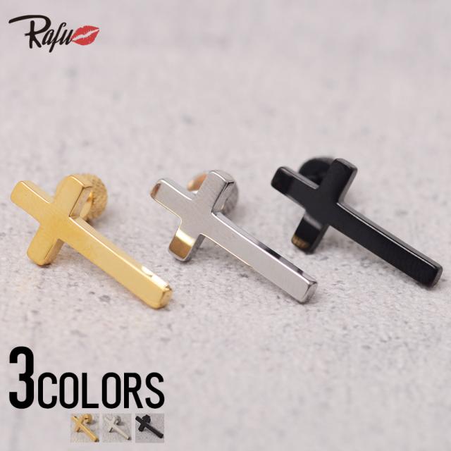 ピアス メンズ Rafu【ラフ】プレーンクロスピアス 全3色 片耳 即日発送【クロス ピアス メンズ アクセサリー BITTER系 ビター系】 プレゼント ギフト バレンタイン