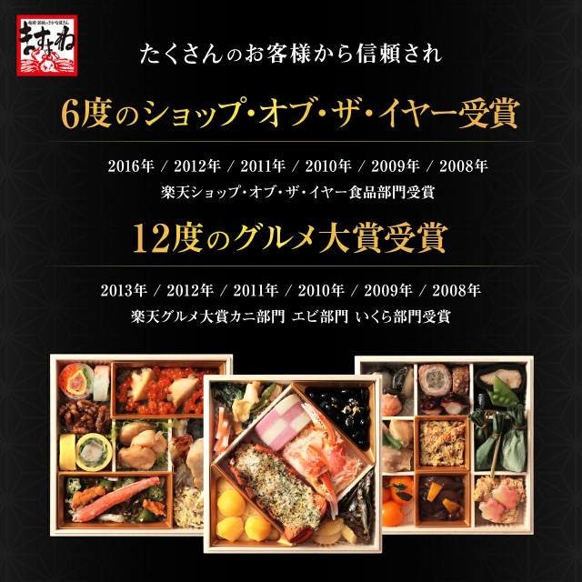- お取り寄せおせちは初めてでした。 31日配送可能のおせちが唯一こちらのお店だけ。 ちゃんと指定時間帯に届けていただき、さらに開けて感動??食べて感動??全てに手の込んだ見事なお料理でした。親子3代の女...