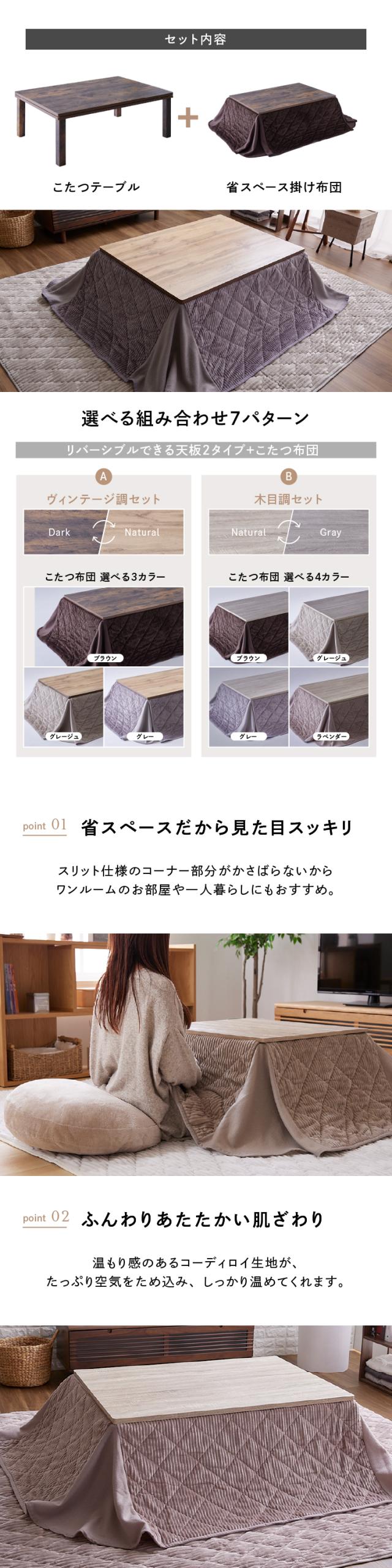 \1,000円OFFクーポン!~12/12 15:59/こたつ こたつセット 省スペース テーブル 掛け布団 セット 長方形 105×75cm コンパクト 本体 新品 防寒対策 防寒 おしゃれ シンプル ブラウン ネイビー 送料無料