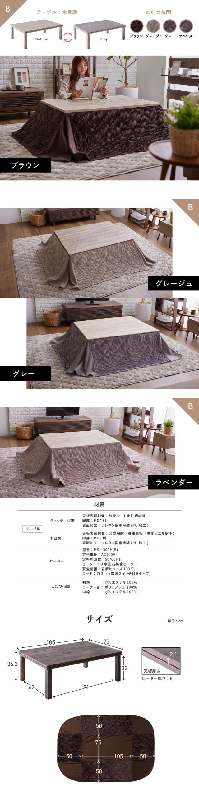 こたつテーブル:幅約105×奥行約75×高さ約36.3
