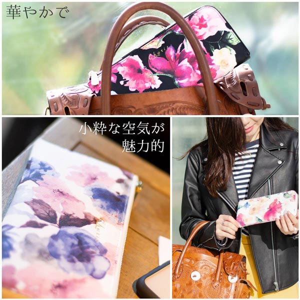 長財布 レディース 薄い 財布 L字ファスナー ボタニカル 花柄 L字ラウンドファスナー 薄型 極薄 小銭入れ カード入れ Lファスナー 母の日 プレゼント ギフト