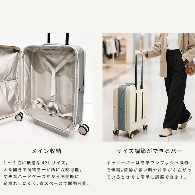 利便性を詰め込んだ機能美キャリーケース。機内持ち込み可能な42サイズで、1〜3泊の旅行にぴったりです!