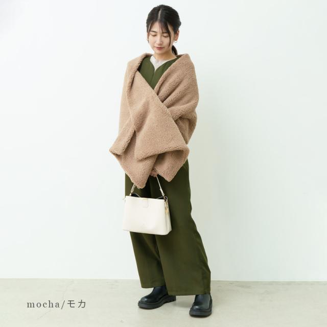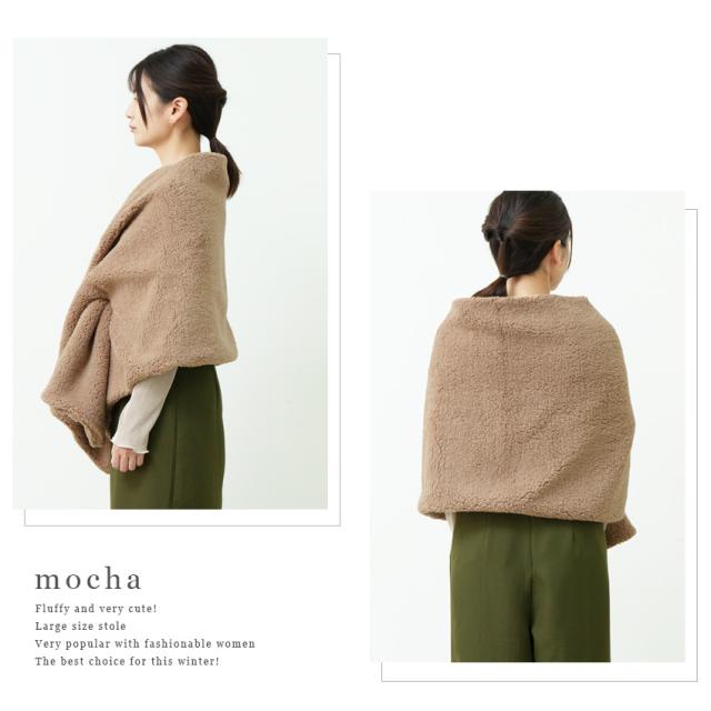 | 【ボリュームファーだから防寒にぴったり】 ほどよくボリュームのあるボアだから防寒性もばっちり! 肩から上半身をすっぽりと包み、ぽかぽかでおしゃれを楽しみましょう! |