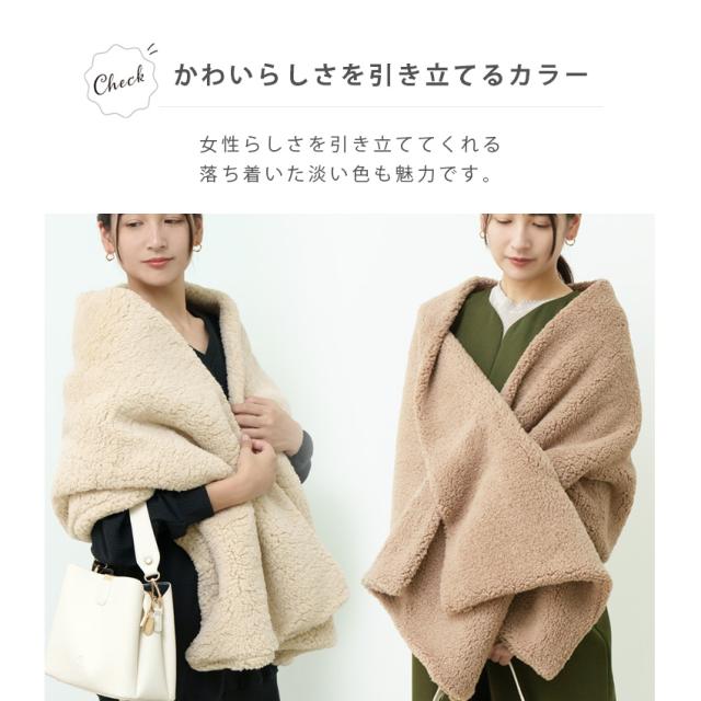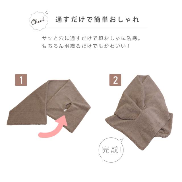 | 【被るだけで簡単おしゃれ】 サッと肩にかけ穴に通すだけで即おしゃれに防寒! 時短になって忙しい朝の味方です! |