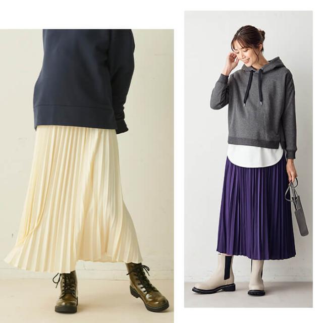 大人っぽく着こなせるアコーディオンプリーツを、シックな秋冬カラーで