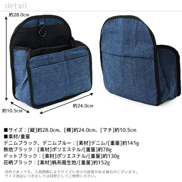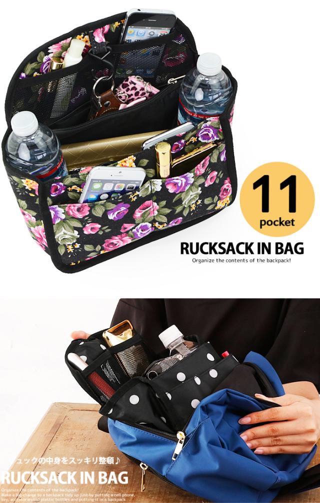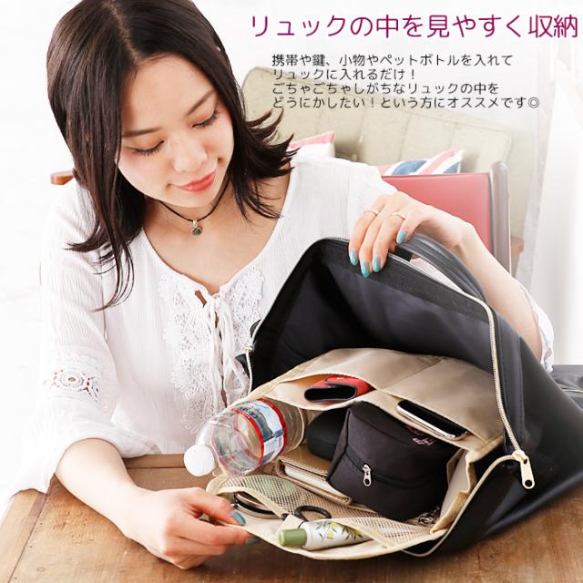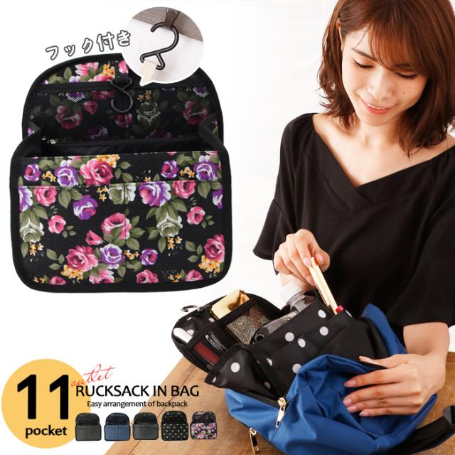 アウトレット インナーバッグ 軽量 縦型 バッグインバッグ LuLu&berry リュックインバッグ フック付き (ar-FINRUm)【メール便送料無料】 ミニ リュック バッグ 中身 整理 小物 仕分け 収納 ポケット シンプル おしゃれ レディース メンズ