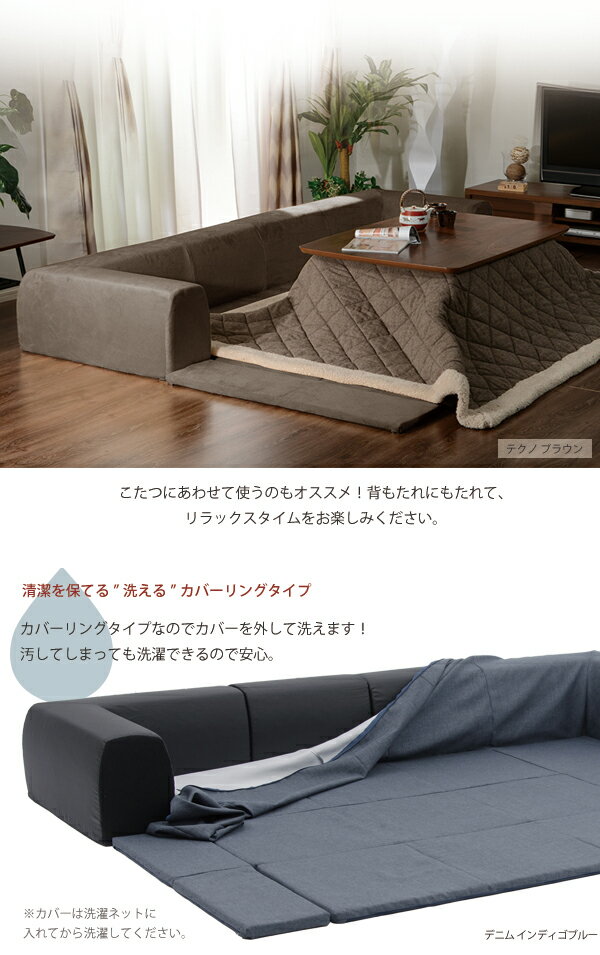 カバーリング ローソファ Lサイズ 送料無料 こたつ敷き布団 長方形 こたつ用 ローソファー こたつ 安い 激安 折りたたみ フロアソファ 3人掛け プレイマット付き 日本製 こたつを囲うソファ