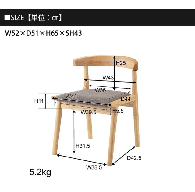 ■サイズ:W52×D51×H65×SH43cm■素材:【BR/GR】天然木(アッシュ) ウレタン塗装 ポリエステル コットン