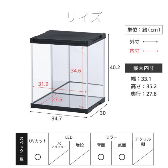 ダブルミラー&UVカット フィギュアケース J-STAGE UVカット 送料無料 アクリル 鏡 コレクションケース 卓上 ロータイプ アクリルケース 人形ケース プラスチック ミラー付き 背面ミラー キュリオケース コレクションラック ショーケース 日本製