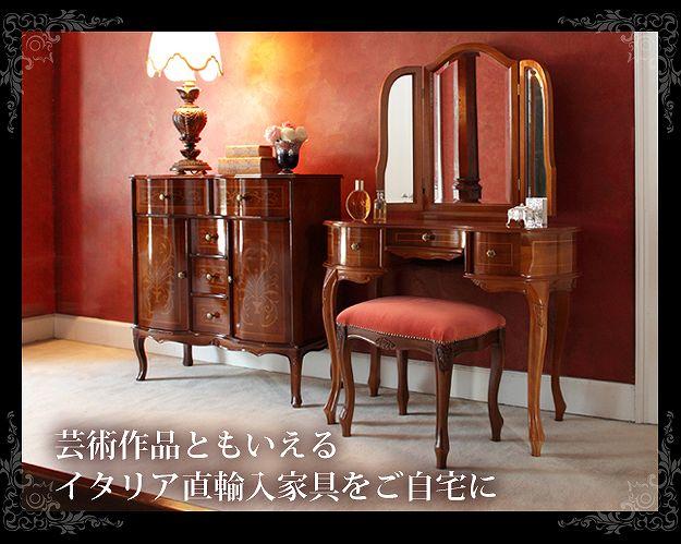 イタリア製を手の届く価格で クラシック 三面鏡ドレッサー 送料無料 アンティーク ドレッサー ロココ調 家具 おしゃれ 輸入家具 象嵌 猫脚 家具 化粧台 高級