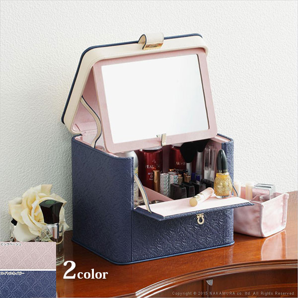 自分流にカスタマイズ メイクボックス 送料無料 アラベスク コスメボックス 鏡付き バニティボックス 大容量 おしゃれ ピンク かわいい 撥水 人気 可愛い バニティケース 持ち運び 鏡付き化粧ボックス