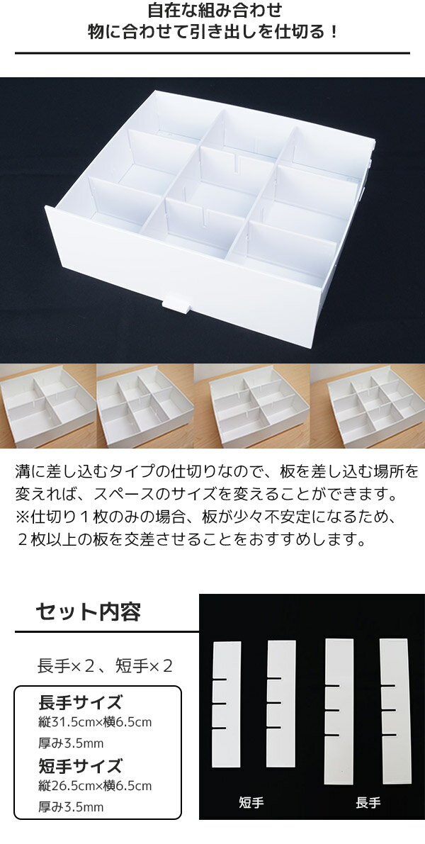 ※こちらは3段引き出し用間仕切り(1段分)単品のページです。ボックス本体及び引き出しは付属しません。