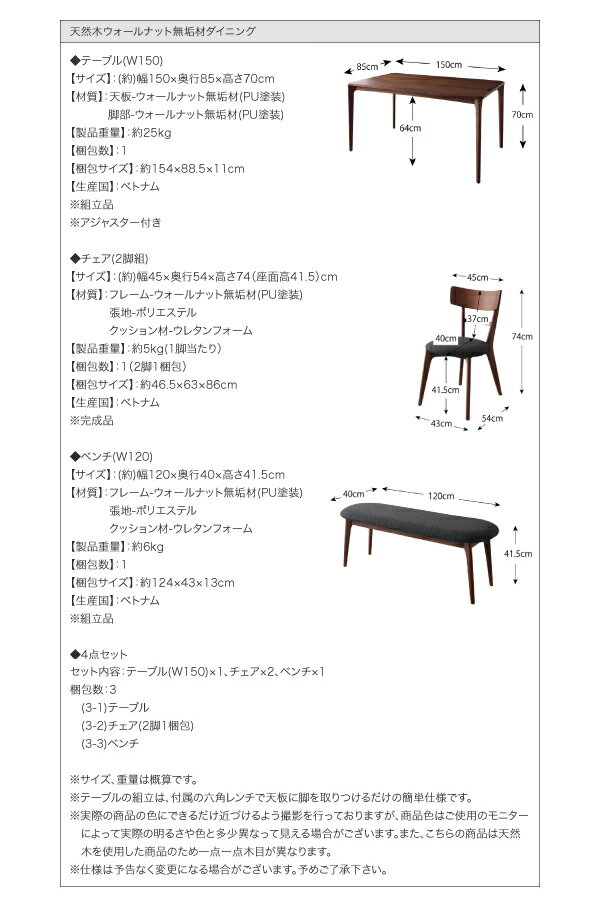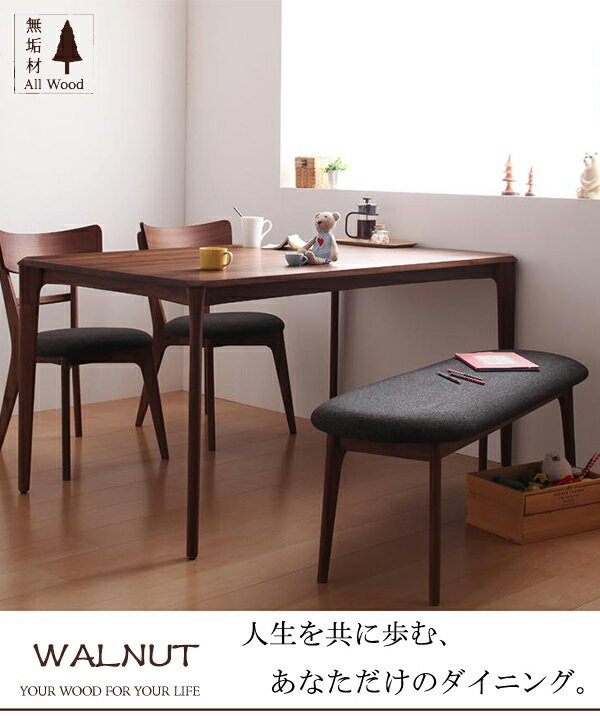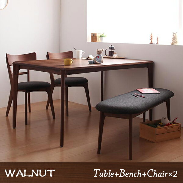無垢材という贅沢 ウォールナット ダイニング 4点セット 送料無料 ダイニングテーブルセット 4人用 おしゃれ 激安 安い ダイニングベンチ 4点 無垢 北欧 北欧