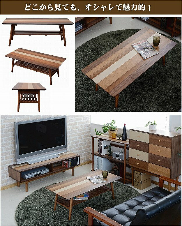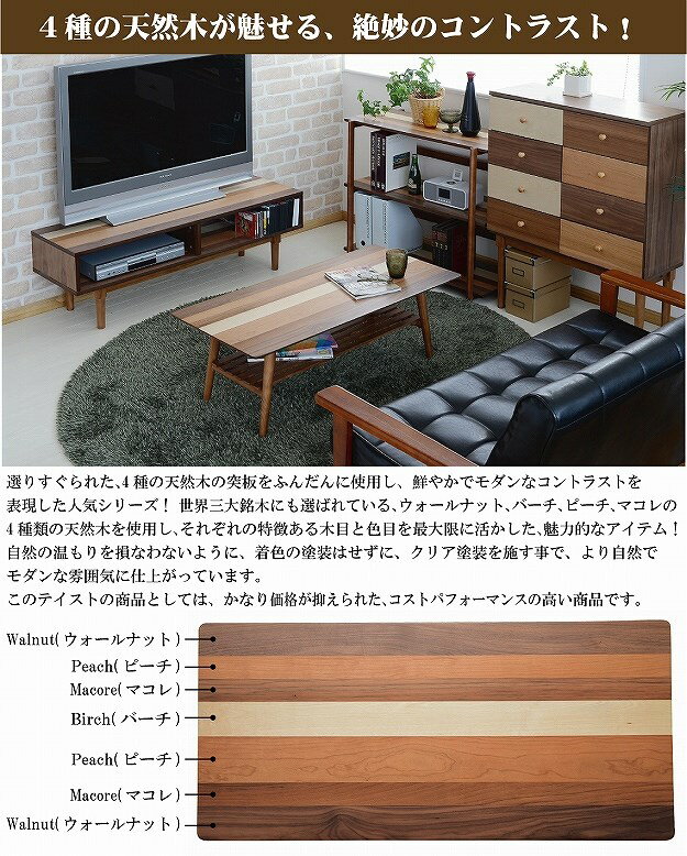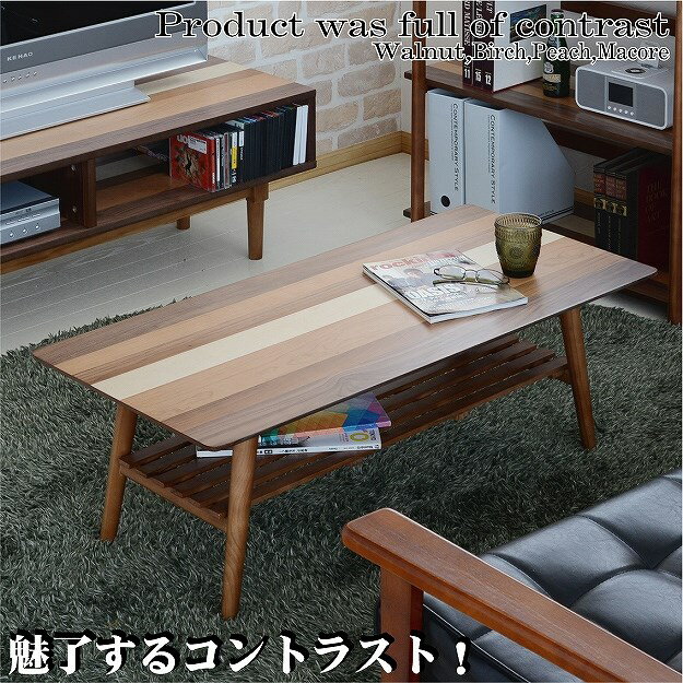4種の天然木のコントラスト センターテーブル 送料無料 折れ脚 ローテーブル 木製 か