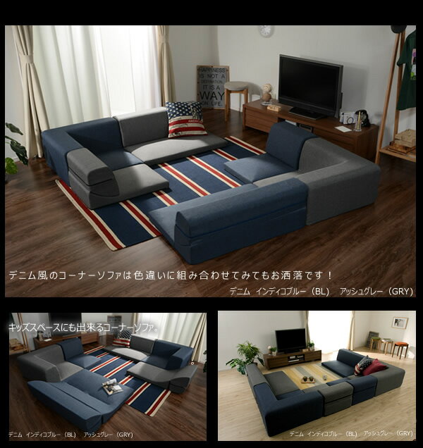トレンドのデニム素材も登場 コーナーソファー ロータイプ 送料無料 ローソファー コーナーセット デニム 3人掛け 激安 こたつ 日本製 L字 L型 おしゃれ 安い 格安 コーナーソファーセット