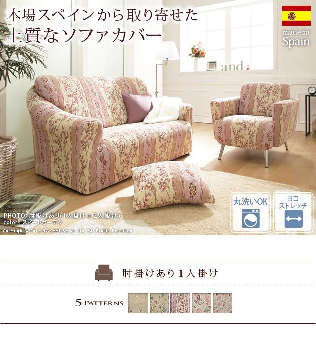 やさしい花柄でリビングをエレガントに彩る スペイン製 1人掛け ソファーカバー 肘付き 送料無料 ストレッチ 一人掛け ソファカバー 伸縮 激安 おしゃれ 安い 格安 花柄 ジャガード織