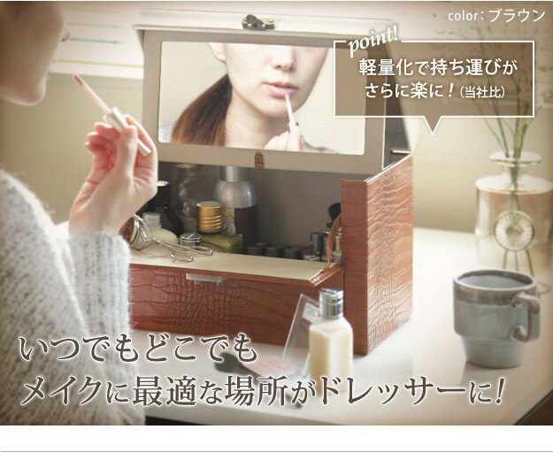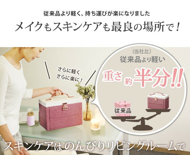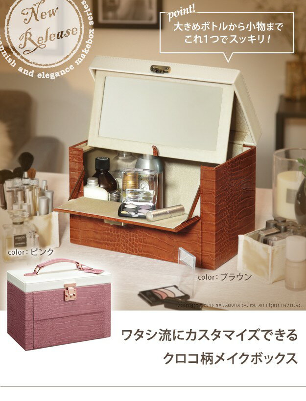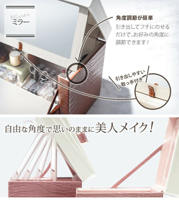 人気のクロコ柄がリニューアル メイクボックス 鏡付き 送料無料 化粧箱 バニティ ピンク コスメボックス 持ち運び かわいい 安い 格安 激安 大容量 クロコダイル おしゃれ 深型 軽い 軽量