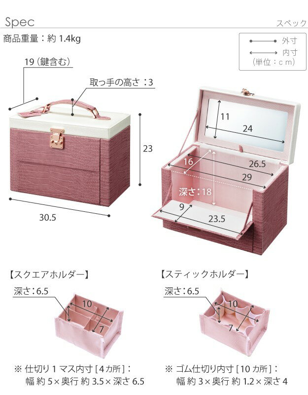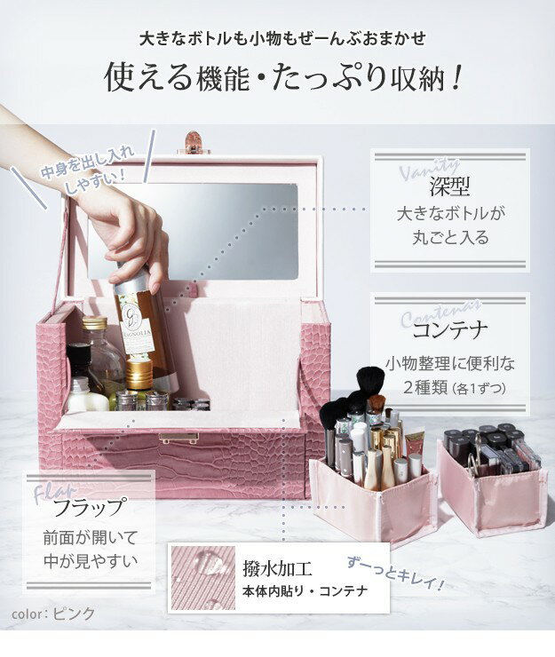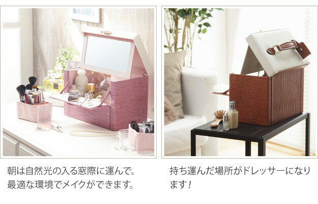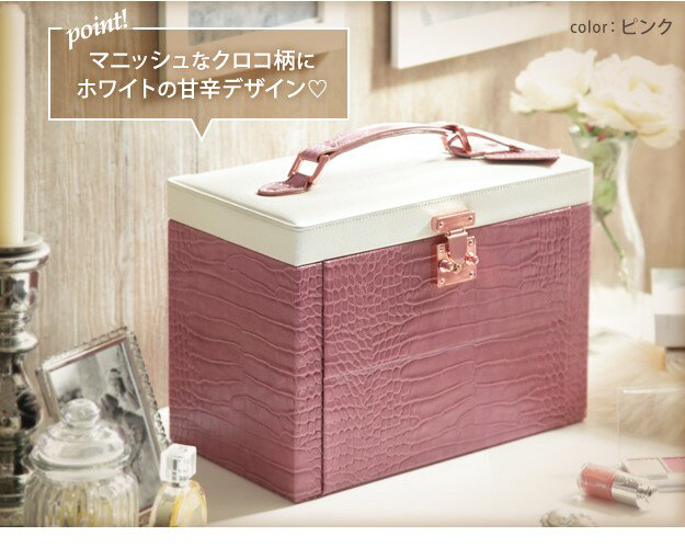 【キーワード】 メイクボックス 鏡付き 送料無料 化粧箱 バニティ ピンク コスメボックス 持ち運び かわいい 安い 格安 激安 大容量 クロコダイル おしゃれ 深型 軽い 軽量